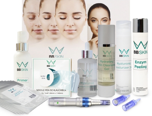 Bei unserer einzigartigen BB Skin Behandlung wird ein spezielles BB Serum (MADE IN GERMANY) bestehend aus Pigmenten, Hyaluron, Vitaminen & Collagen mittels mikroskopischer Nadeln sanft in die Hautoberfläche eingearbeitet.
